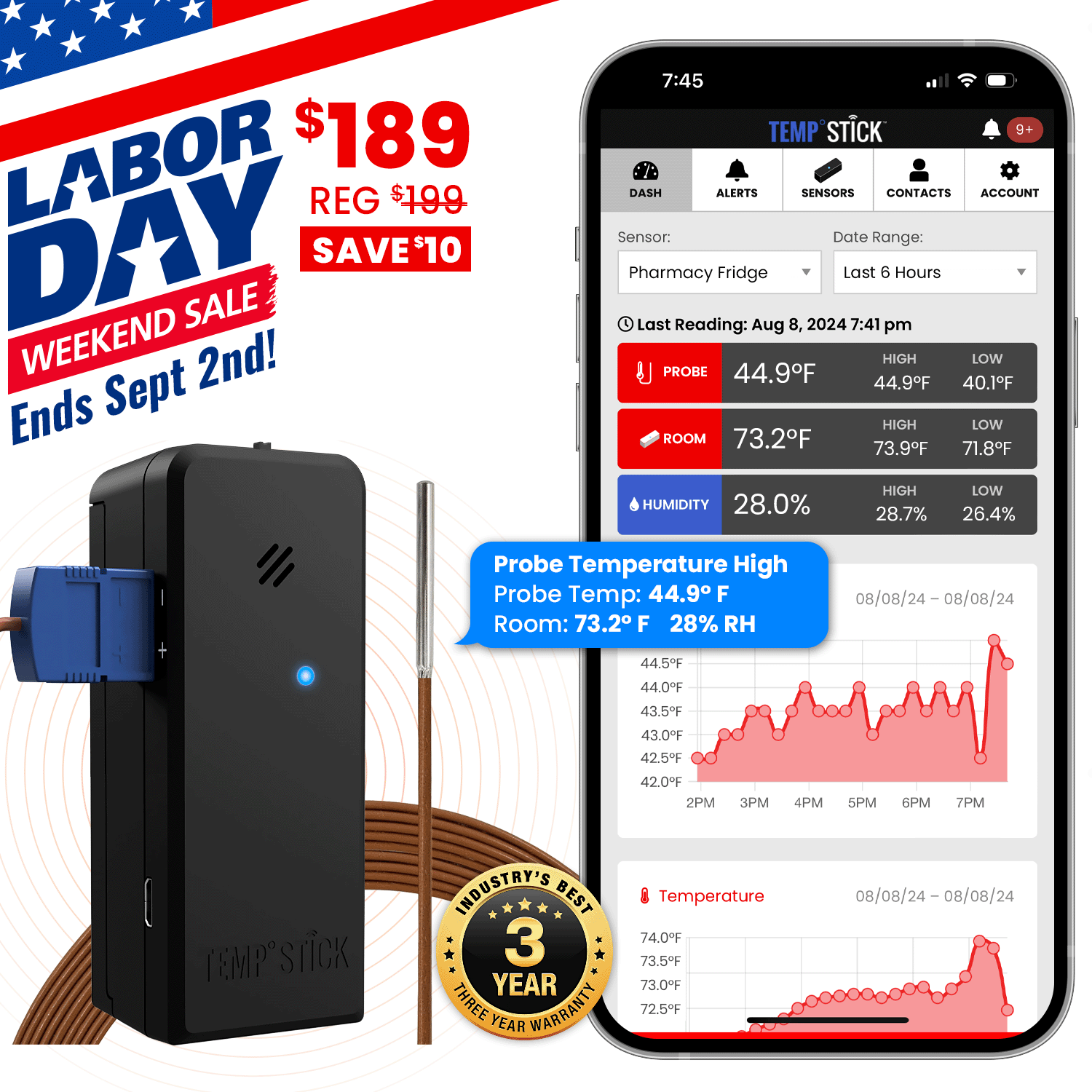 / Labor Day Sale – Temp Stick PRO with Temperature Probe – Black