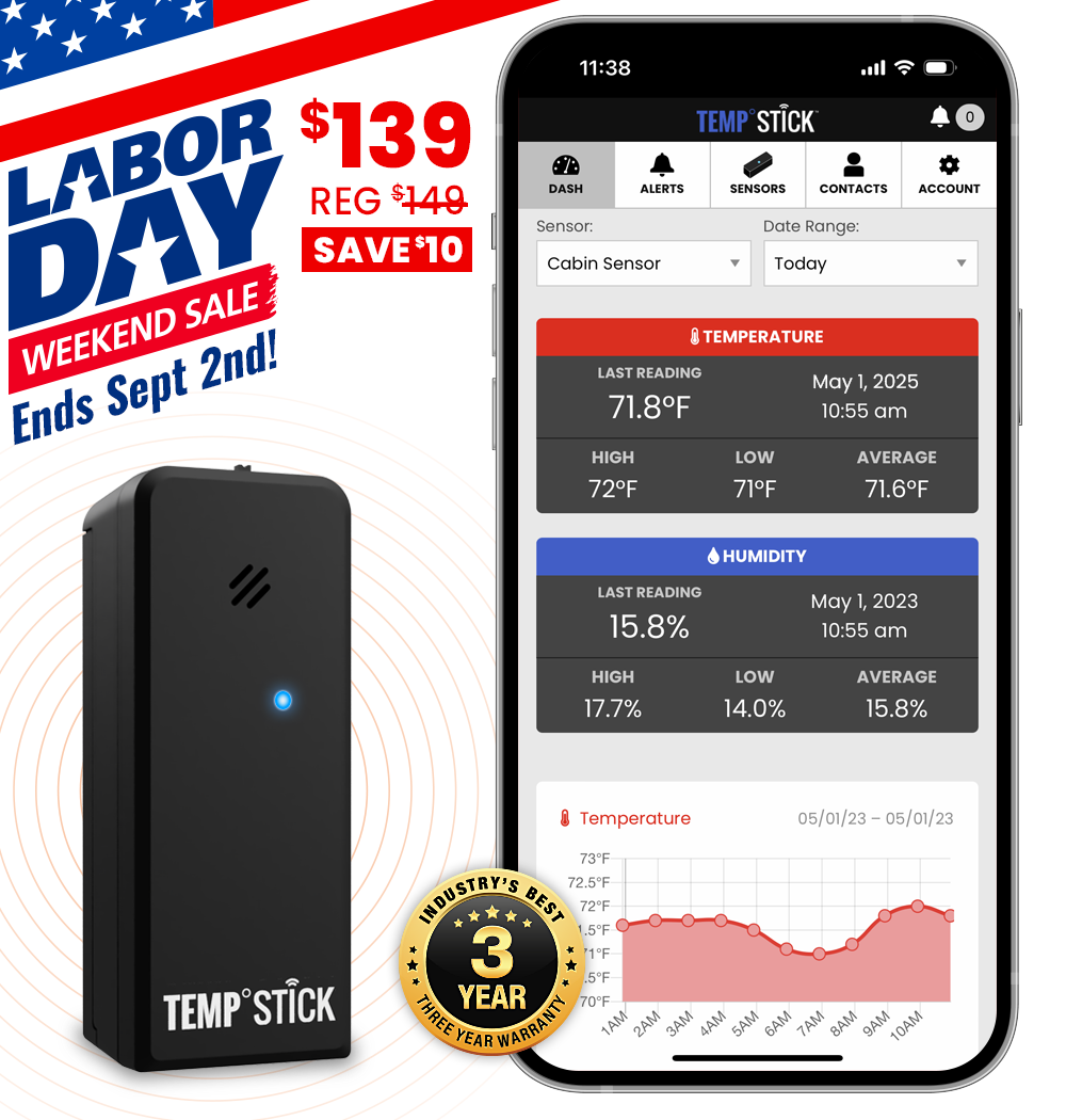 Labor Day Sale – Temp Stick – WiFi Temperature and Humidity Monitor – Black