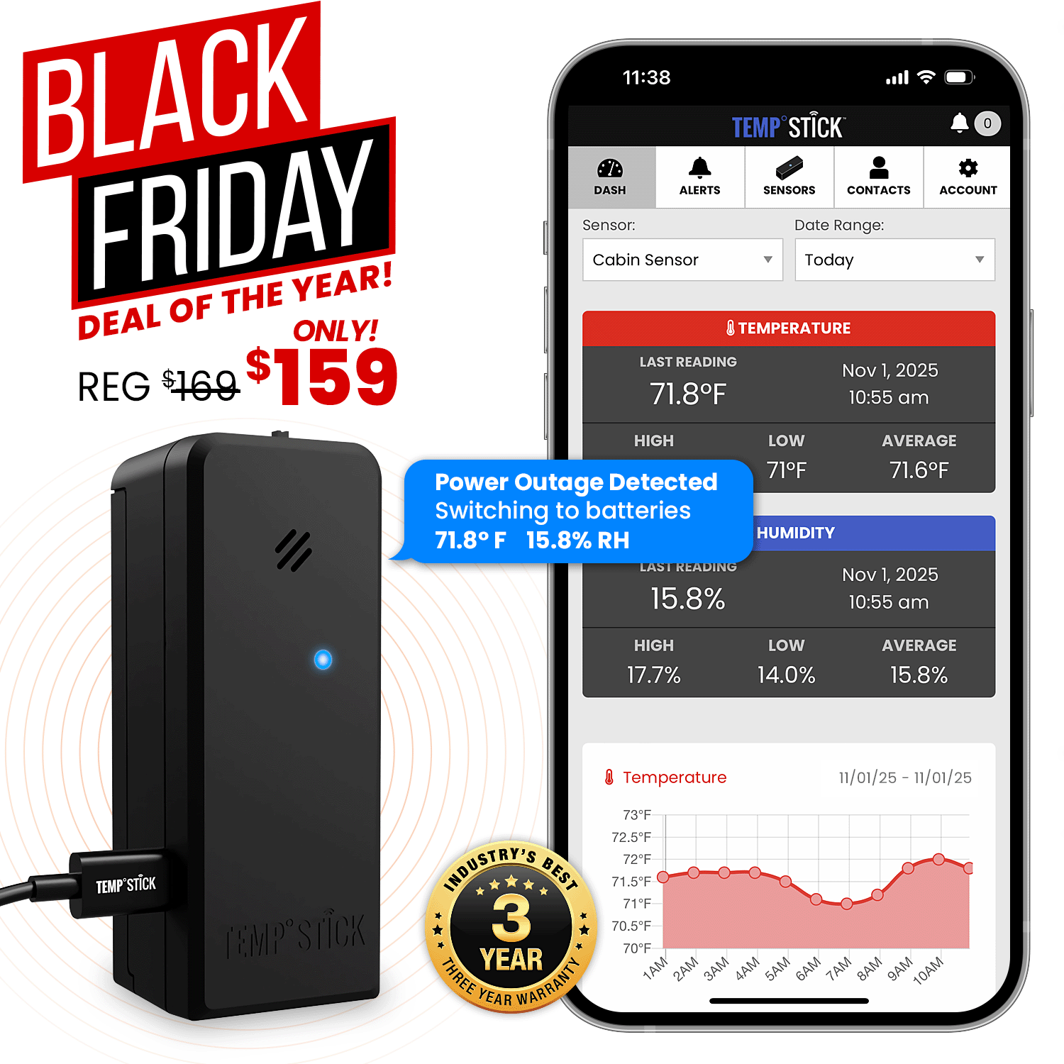 / Black Friday Sale – Temp Stick +Power – WiFi Temperature and Humidity Monitor – Black