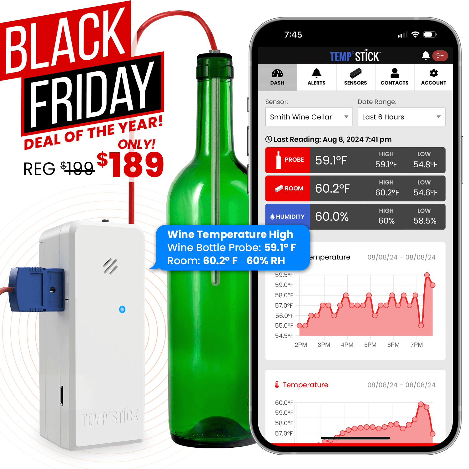 / Black Friday Sale – Temp Stick for Wine with WIne Bottle Probe – WiFi Temperature and Humidity Monitor – White