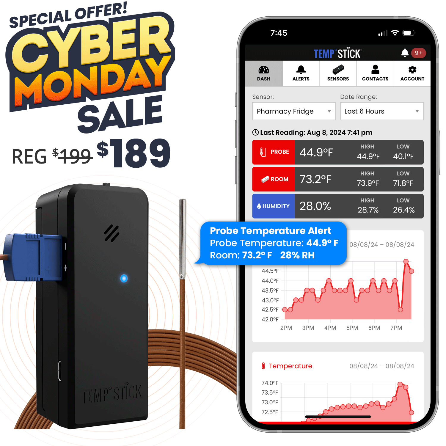 Cyber Monday Sale – Temp Stick PRO with Temperature Probe – Black